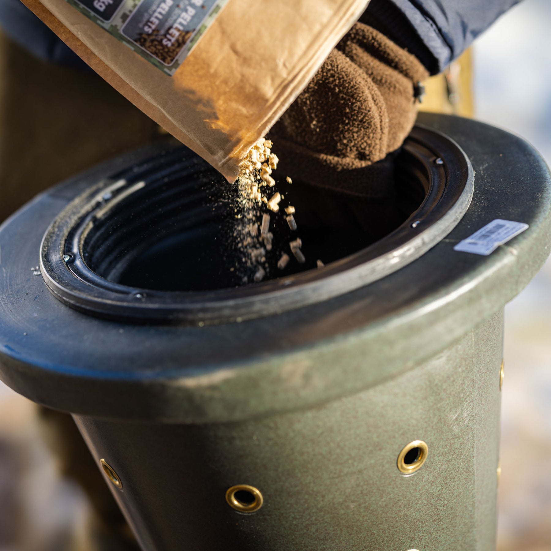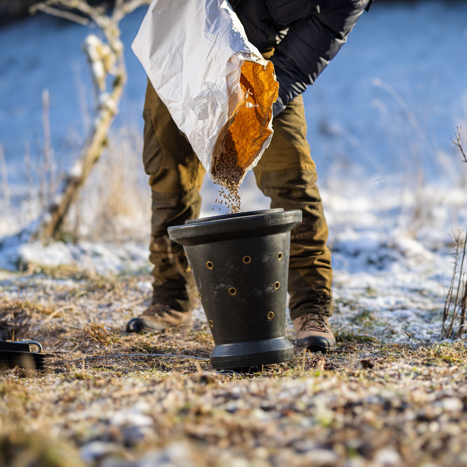 Nyudviklet form, kapacitet omkring 18 kg foder som majs, perfekt til langtidsbeskæftigelse af vildsvin på fodringssteder eller til distraktionsfodring