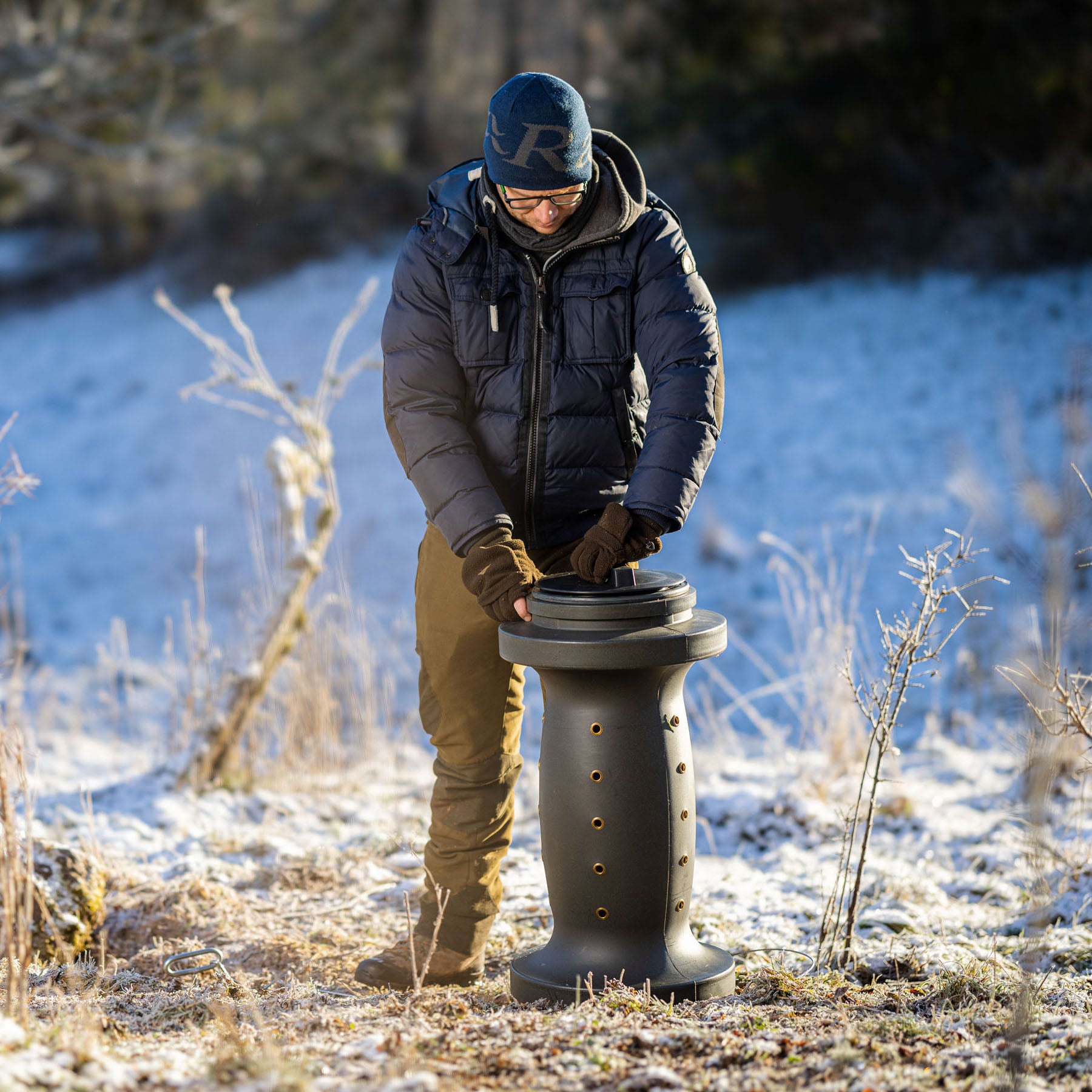 Nyudviklet fodertromle med en kapacitet på 38 kg, brudsikker og slagfast, med fastgørelsesreb og jordanker, udgangshuller er hårde og forstærket med messingringe, kan nemt og hurtigt fyldes takket være skruelåget.