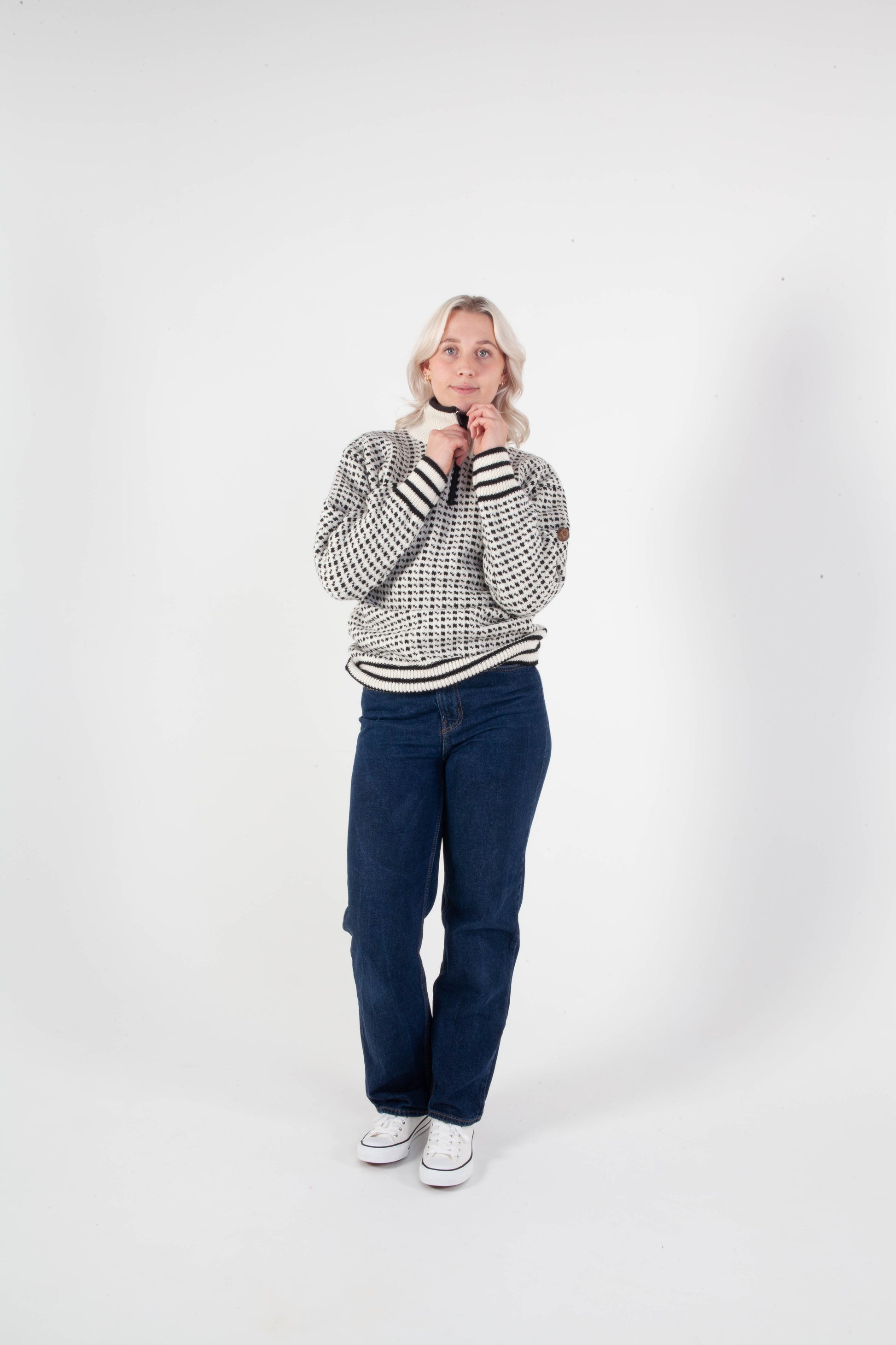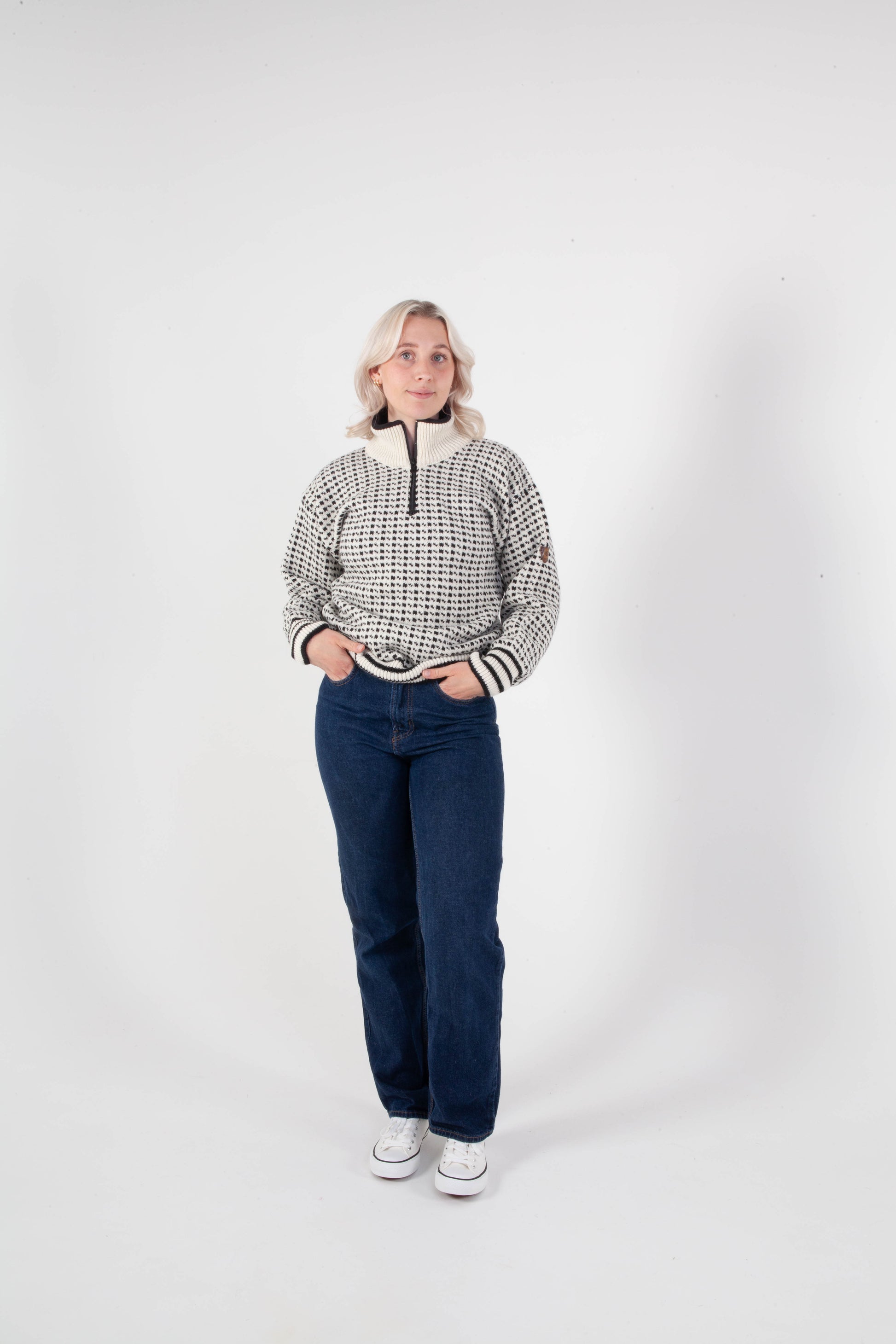 Islander halv lynlås hvid/sort