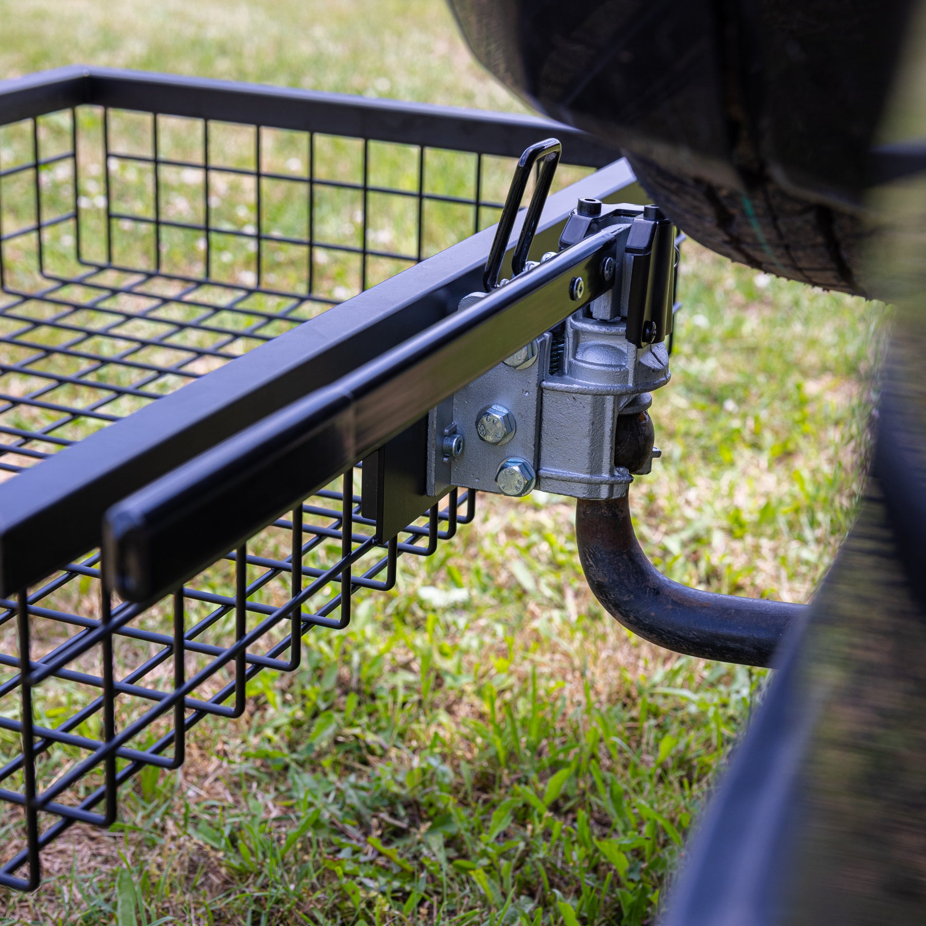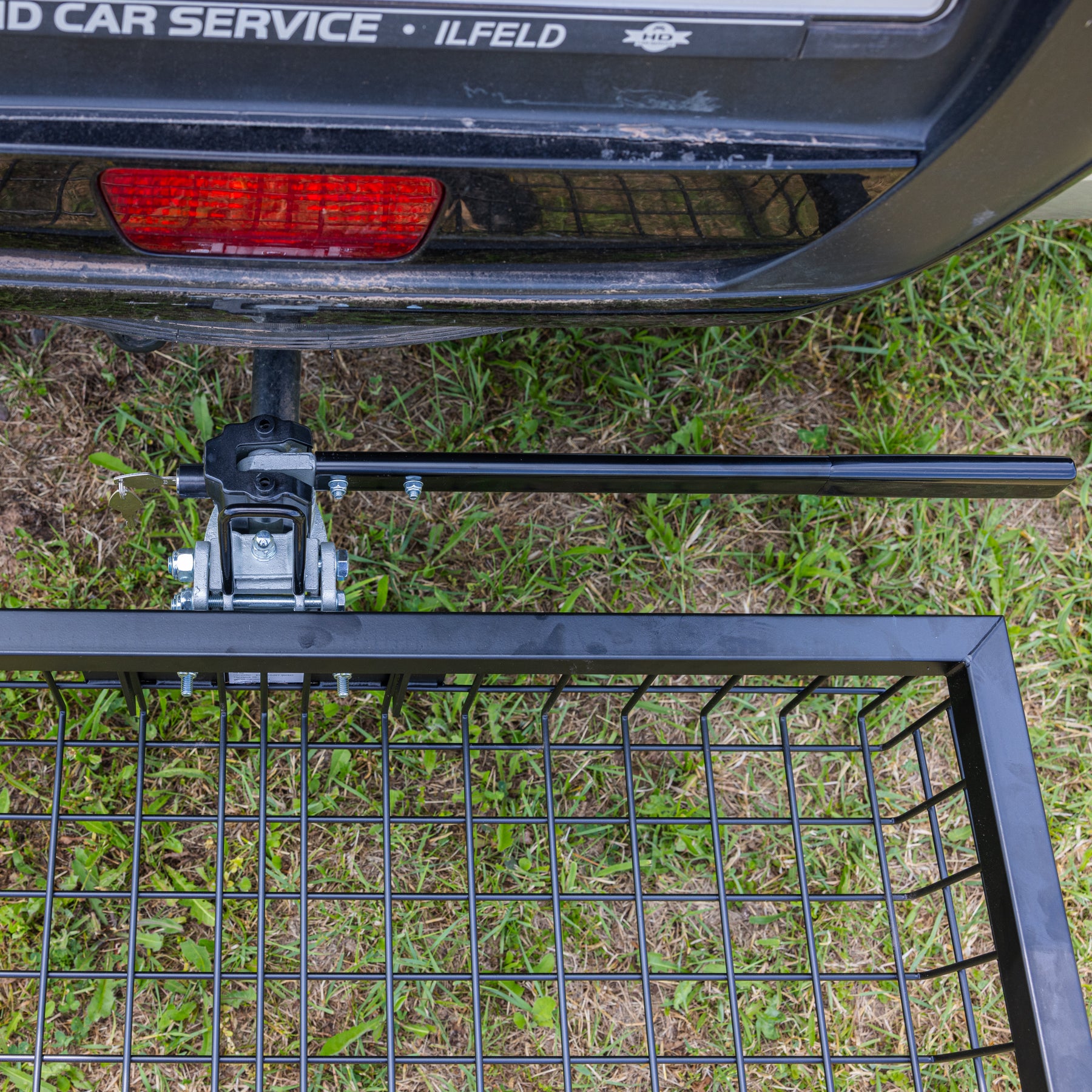 Alt du skal gøre er at fastgøre bagbagagebæreren til anhængerkoblingen med den ene håndtags hurtigspænde, og så er du klar til transport. Bagbagagebæreren kan foldes helt ned og er derfor nem at læsse. Lastkapacitet afhænger af anhængerens last. Vægt kun ca. 9 kg.