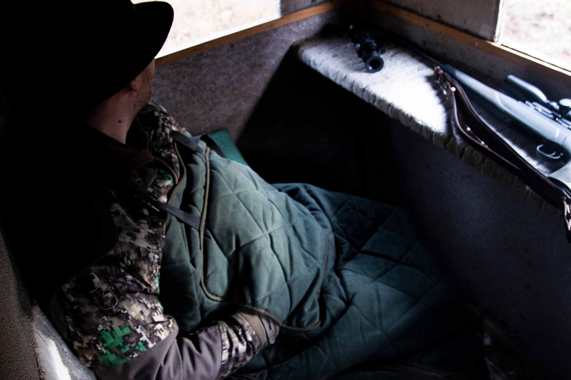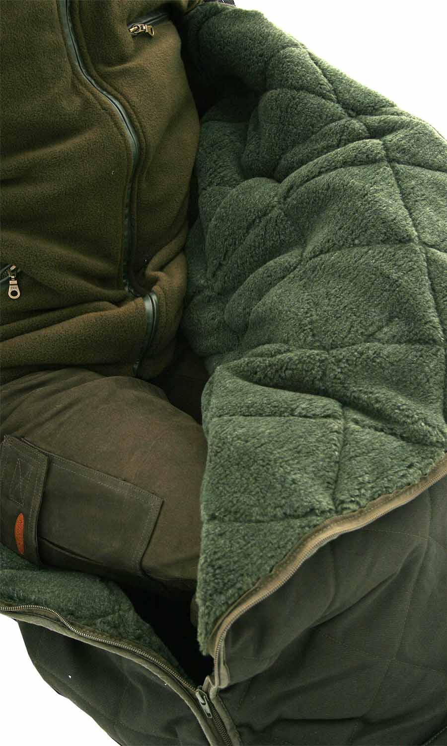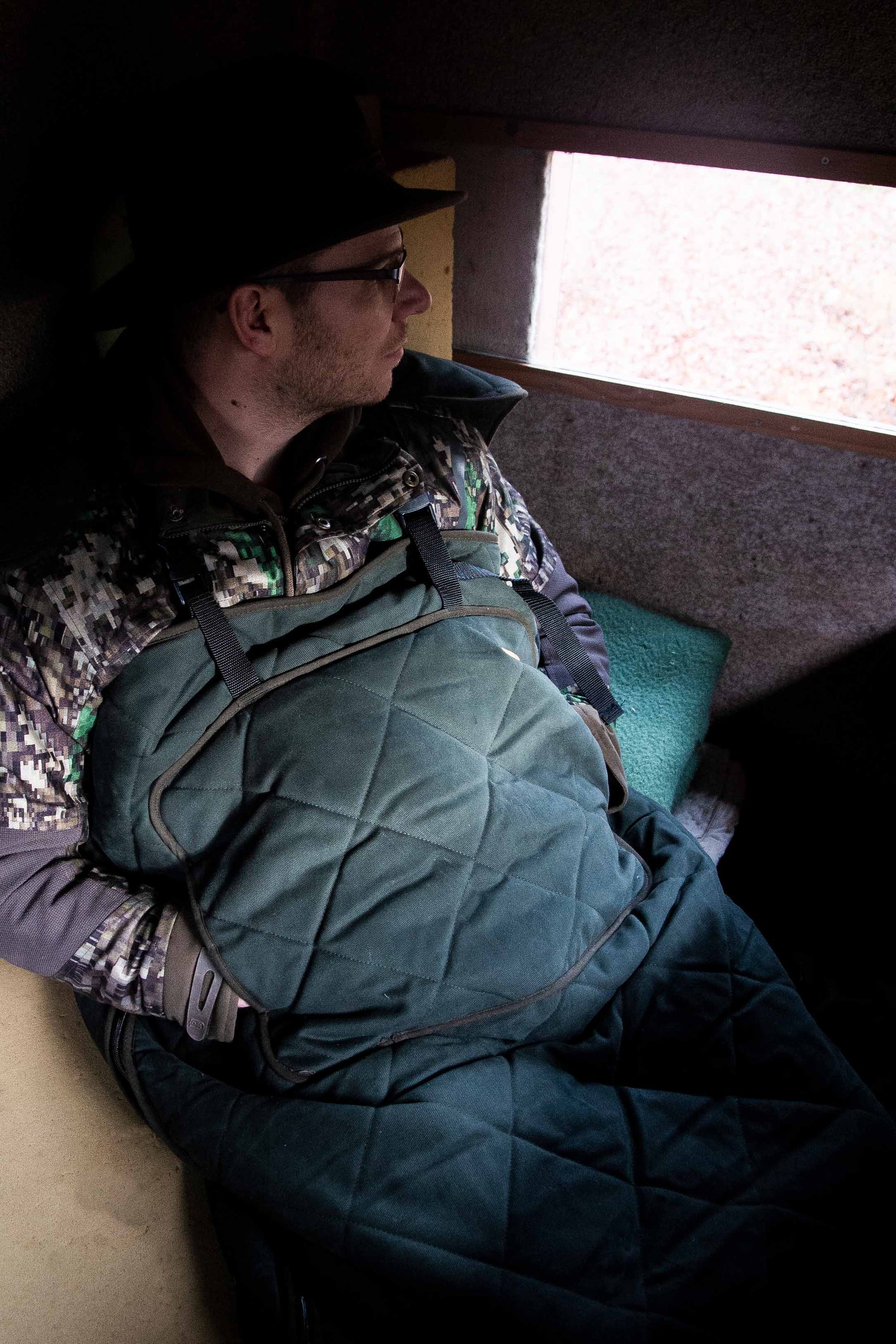 En varm pose til anstands jagt til kolde vinternætter med ekstra høje skulderdele og skulderstropper og lynlås i siden for nem adgang.